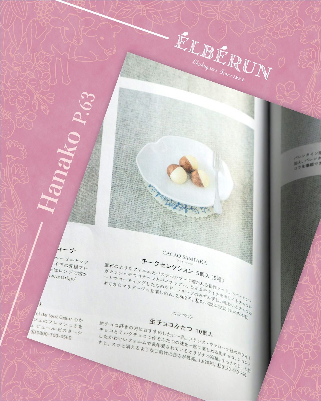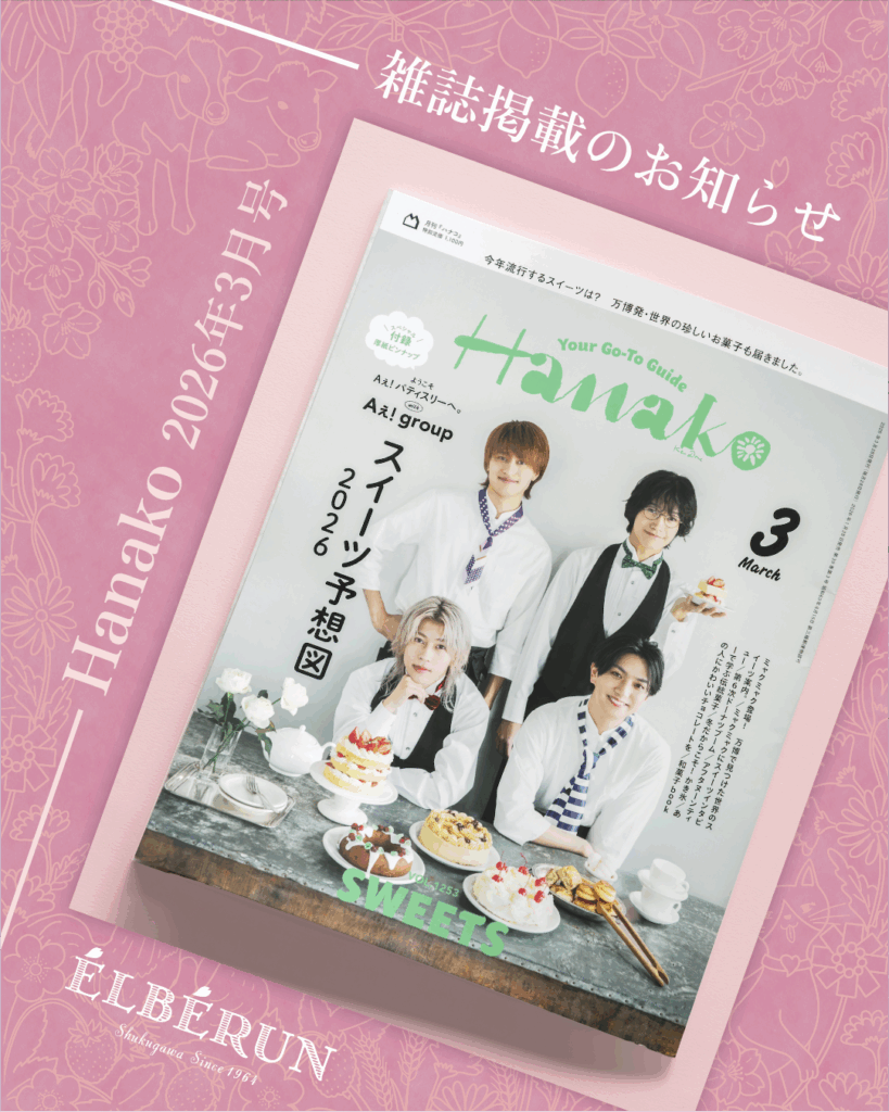 マガジンハウス(2026年1月28日(水)発行) 「Hanako 2026年3月号 スイーツ予想図 2026」に「生チョコふたつ」をご紹介いただきました。