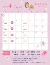 いつも、エルベランをご愛顧頂きありがとうございます😊 4月の営業日のご案内です。 いよいよお花見シーズンですね🌸 夙川のさくらも咲き始め、春の訪れを感じます。 エルベランでは、お花見にぴっ […]