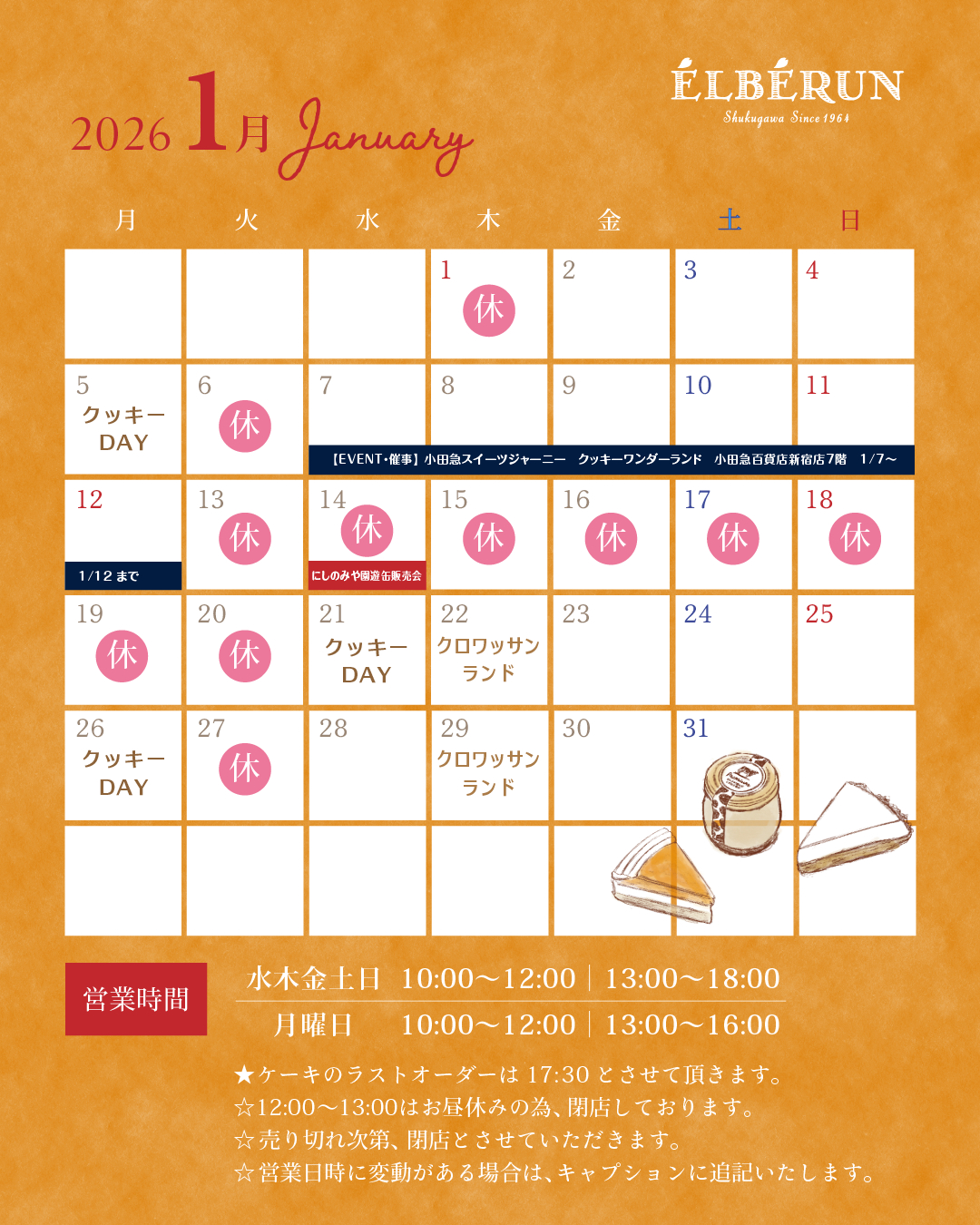 《クッキーデー》《クロワッサンランド》も通常と異なる日程ですので、ご注意ください。