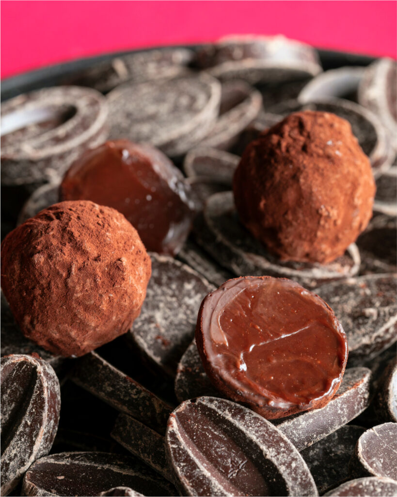 ビター・カフェ・抹茶の3種類のトリュフに加えて、チェリーボンボンも入っています!