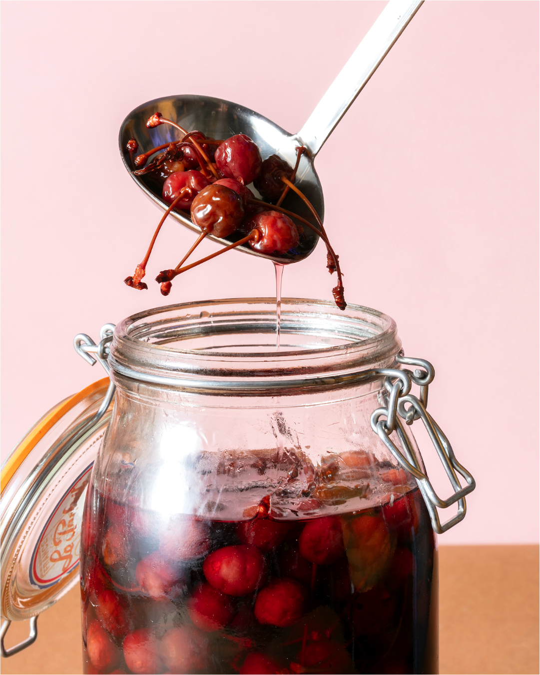 秋田県横手市の平良木農園様で大切に育てられた美味しいサクランボをフランボワーズのブランデーとエルダーフラワーのブランデーをブレンドして漬け込んでいます。