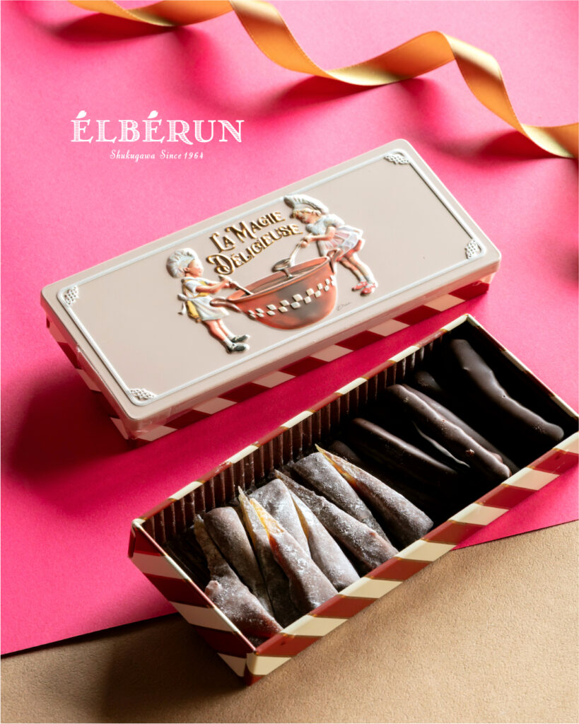 毎年人気のふたご印のオランジェット缶ではオレンジと国産グレープフルーツのハーフ&ハーフでご用意。