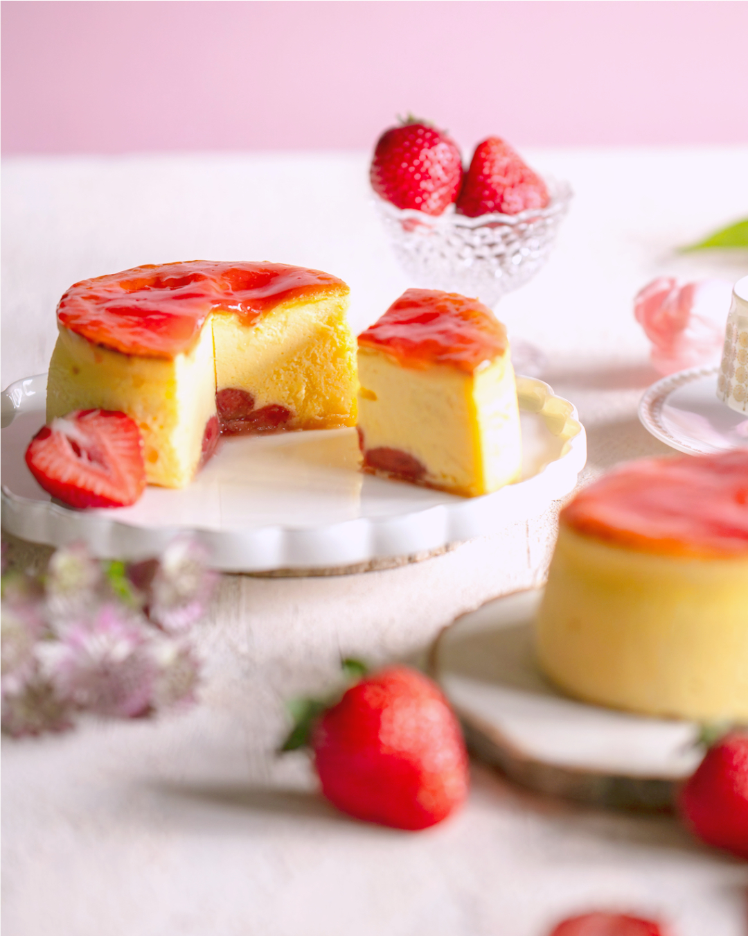 イチゴの旬の時期にちなんでストロベリーチーズケーキをご用意いたしました。