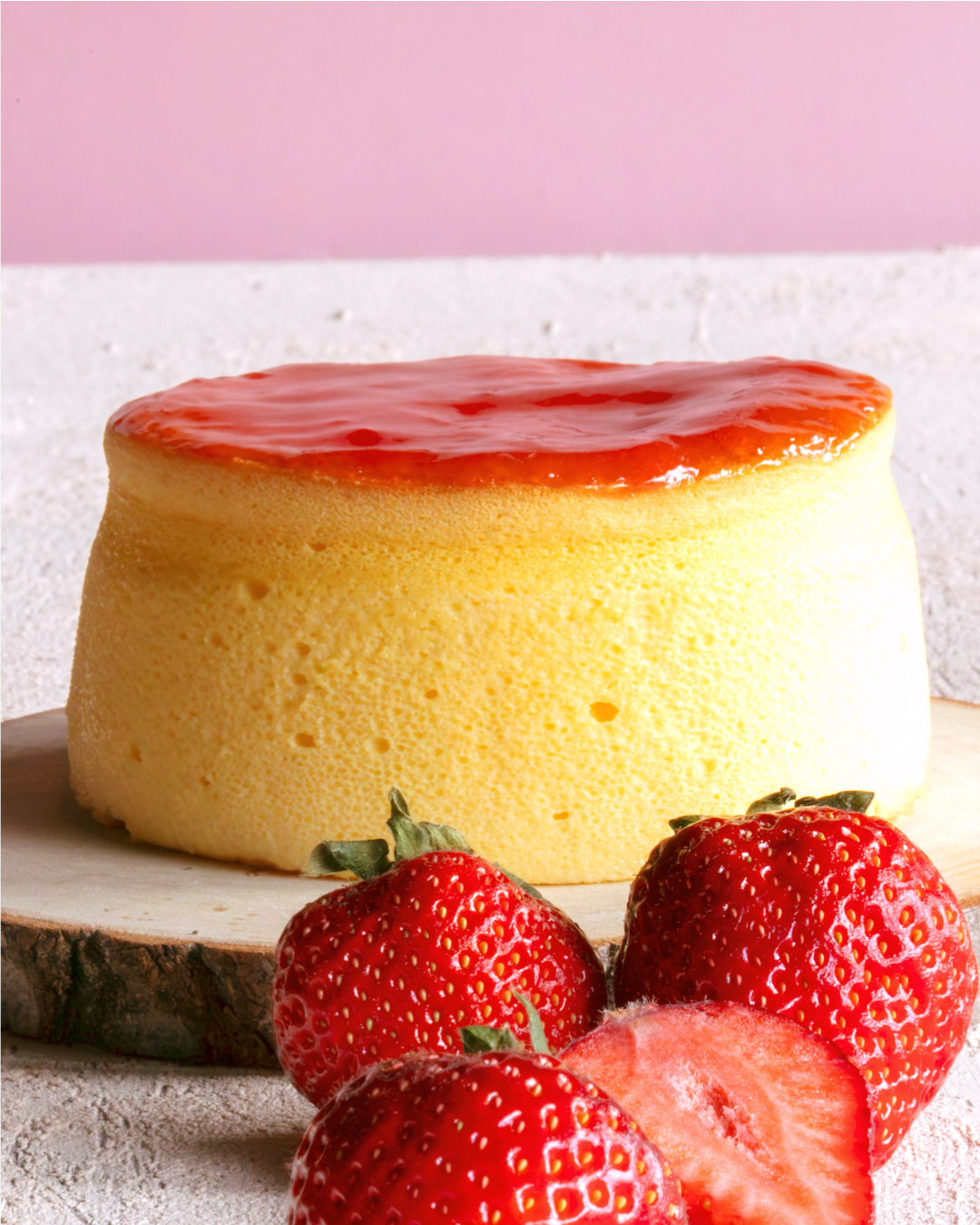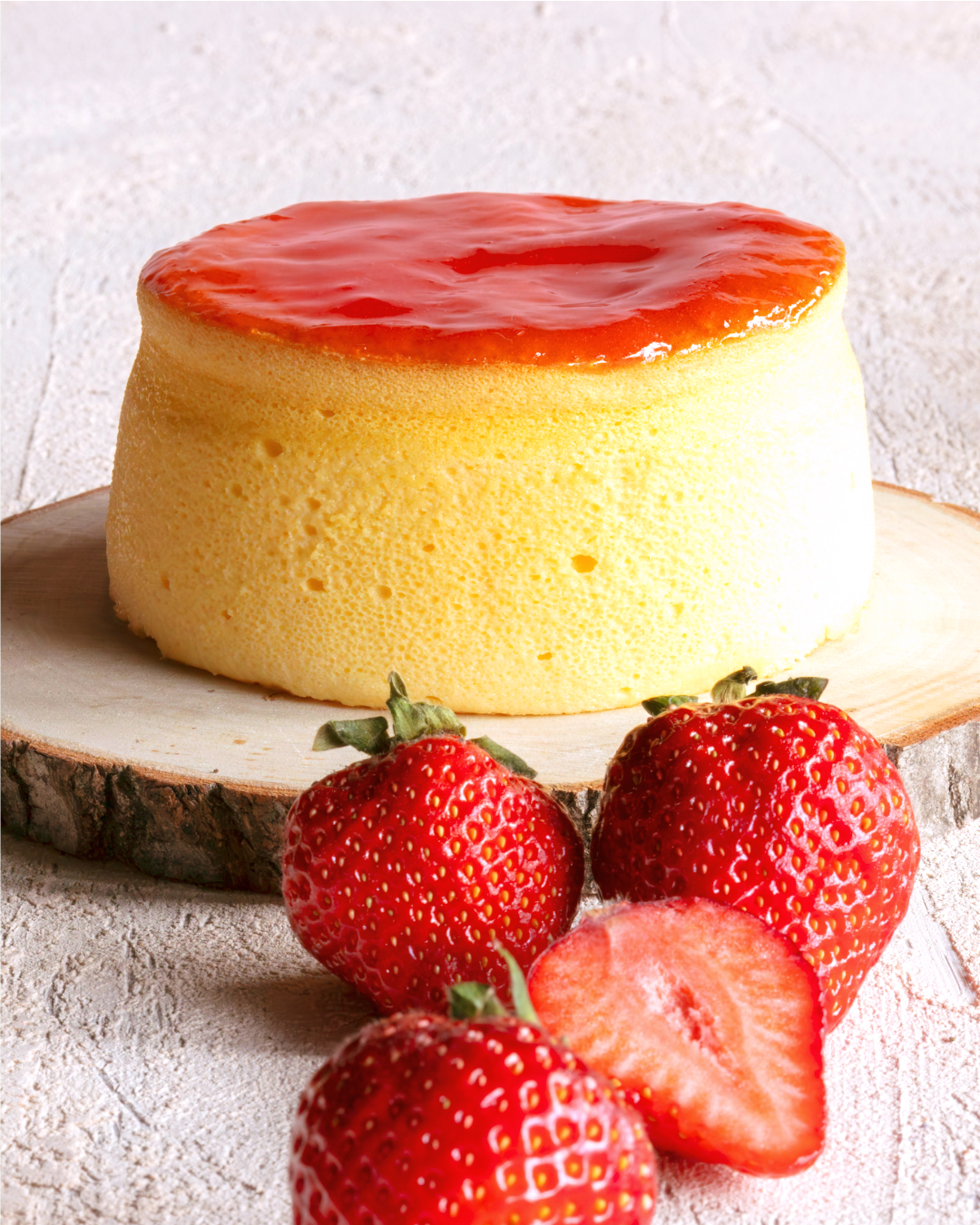 今月は、美味しい完熟イチゴをセミコンポートしてトロッと仕上げて大切にスフレで包みました。